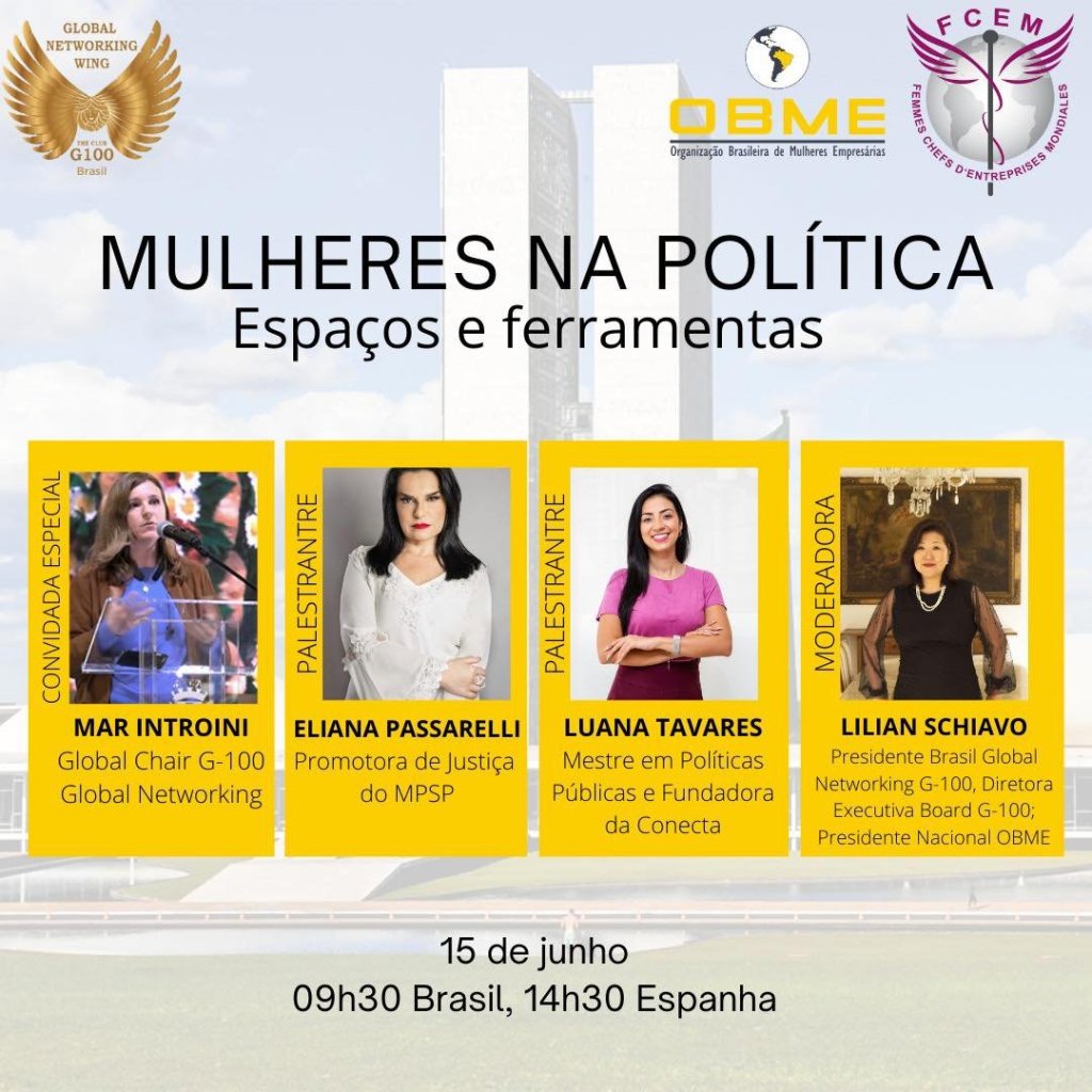 Tive recentemente o privilégio de fazer parte do evento organizado pelo G100 Global Networking Brasil/OBME – Organização Brasileira de Mulheres Empresárias em torno da liderança das mulheres na política. no entanto, muitas questões surgem quando se determina se se trata de uma questão de número ou de aptidão. Finalmente, se houver um teto de vidro ou se faz parte de uma “maquinaria” que não se adapta às necessidades específicas das mulheres. Além disso, temos de ter seriamente em conta que o sector político não só é decadente como não está a responder eficazmente às crises. elementos suficientes para determinar que a liderança das mulheres na política não é realmente uma opção para o futuro, mas uma necessidade atual de fazer parte da tomada de decisões.