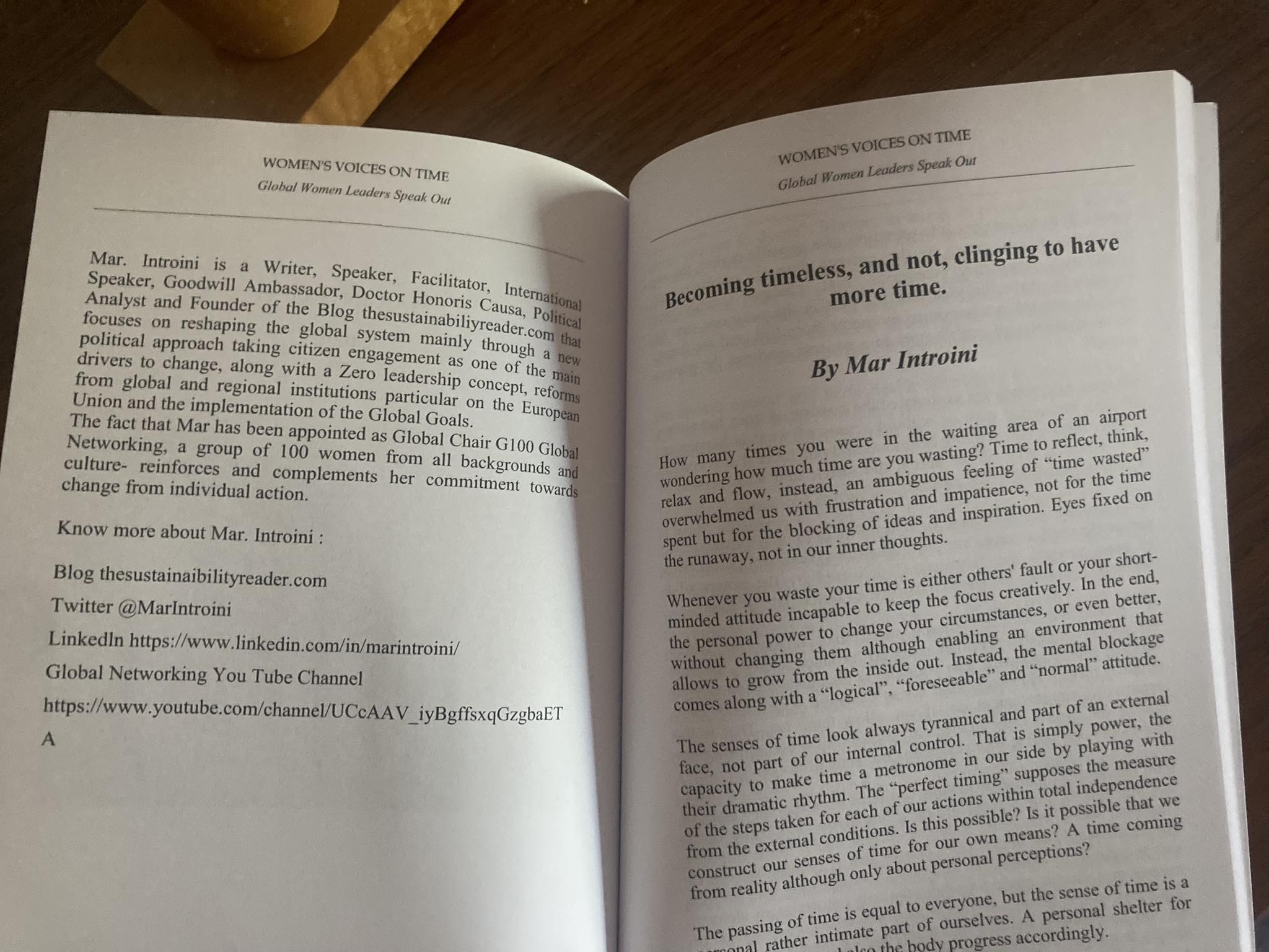 - “Women´s voices on time” Global Women Leaders Speak Out.