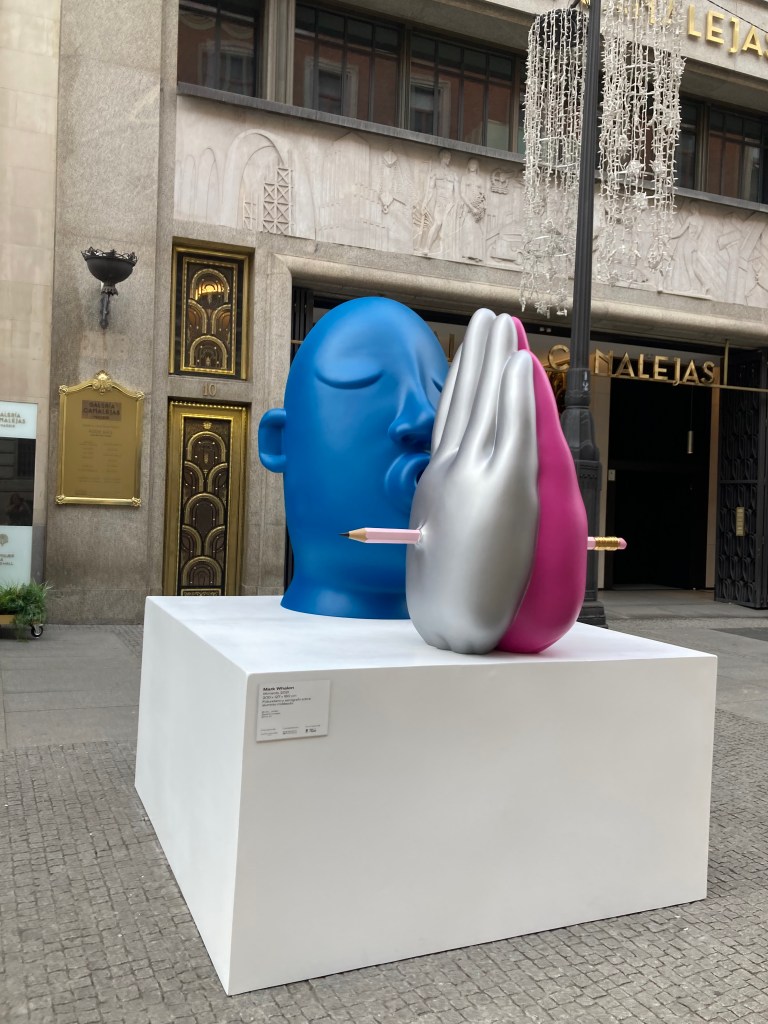 Nos encontramos en un momento histórico colorido pese a lo monocromático que supone un mundo en crisis. Donde analizar las distintas perspectivas supone un ejercicio de responsabilidad individual que imprime a la sociedad de una profunda reflexión. Como en la escultura “Momentos” de Mark Whalen, la solución está en nuestras manos, en dibujar con trazo firme y decidido, el diseño de una sociedad activa y pujante, utilizando el pensamiento crítico como única arma. Lo contrario, la falta de creación nos transforma en autómatas de un escenario en blanco y negro, donde el lápiz que dibuja nuestros destinos lo poseen en exclusividad instituciones y líderes negativamente impregnados de ideologías, en vez de ser conciliadores y dadores de estabilidad global.
